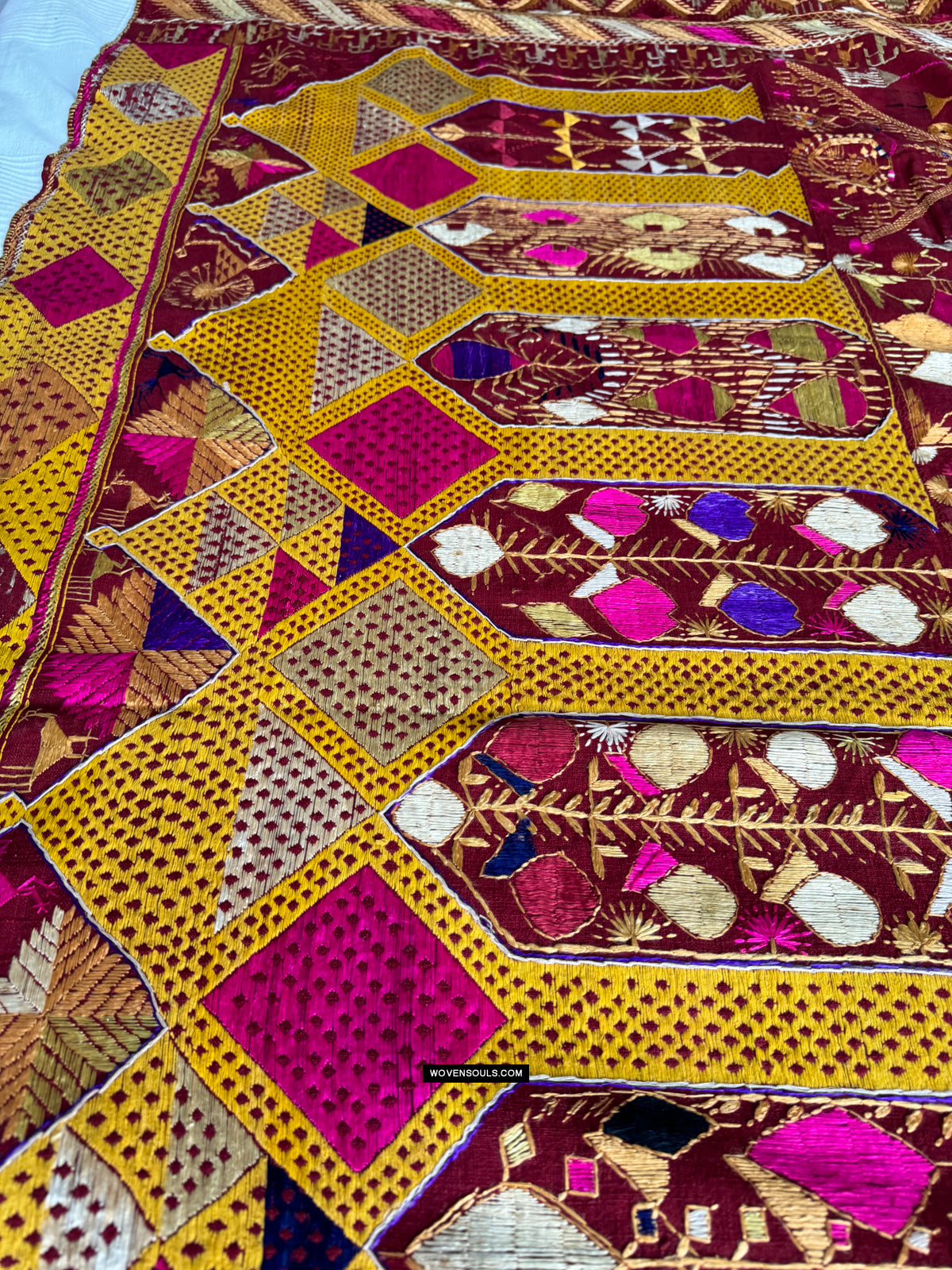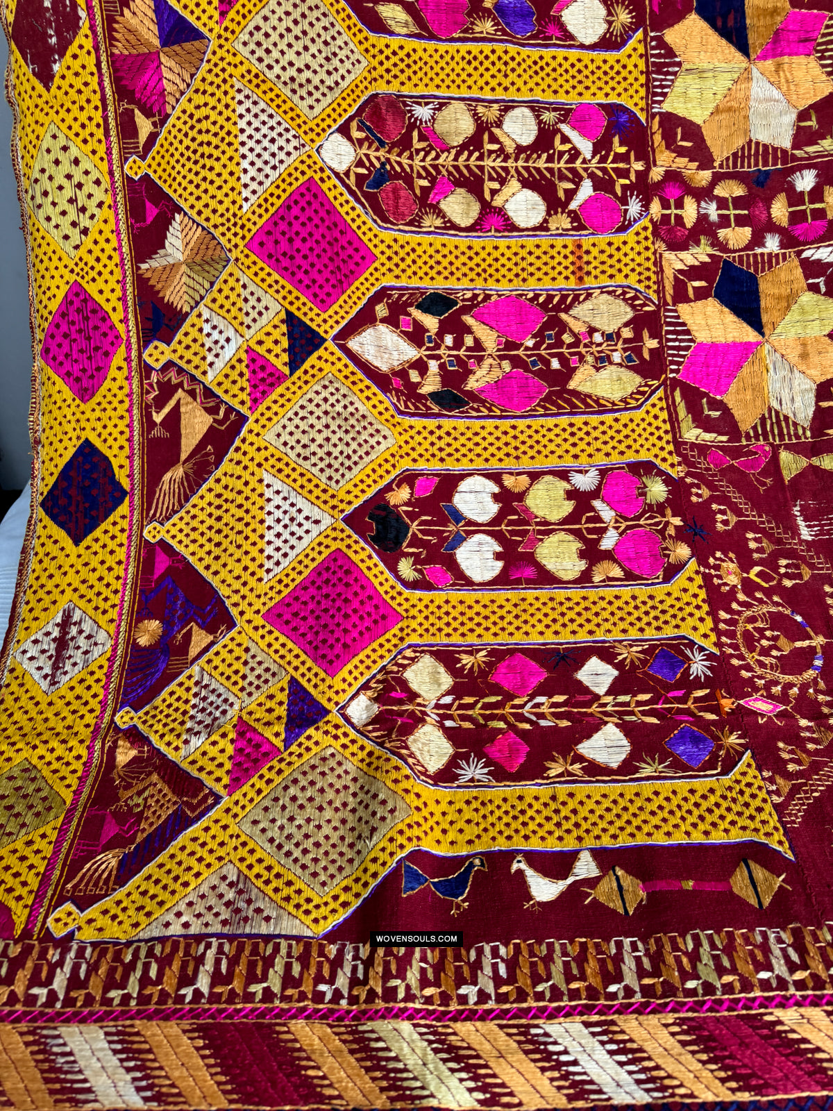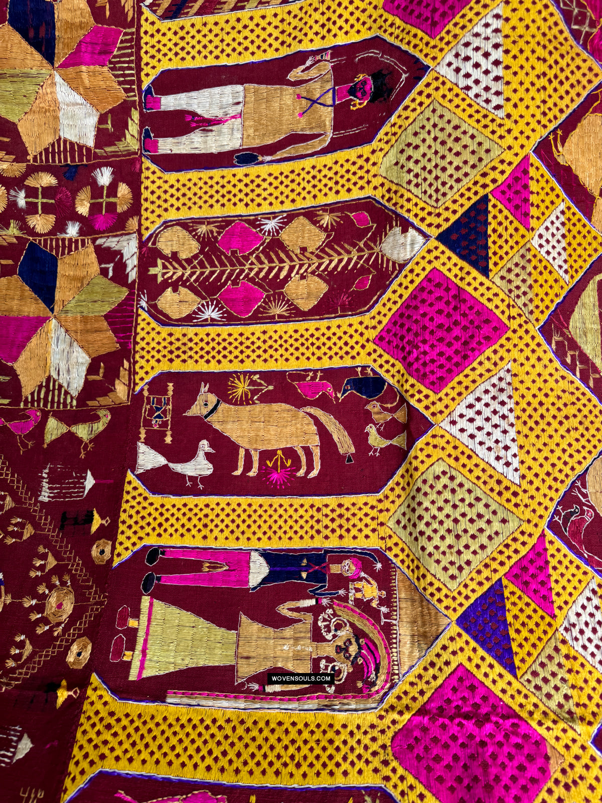 808 SOLD Antique Darshan Dwar Phulkari Bagh Textile - Wedding Scene