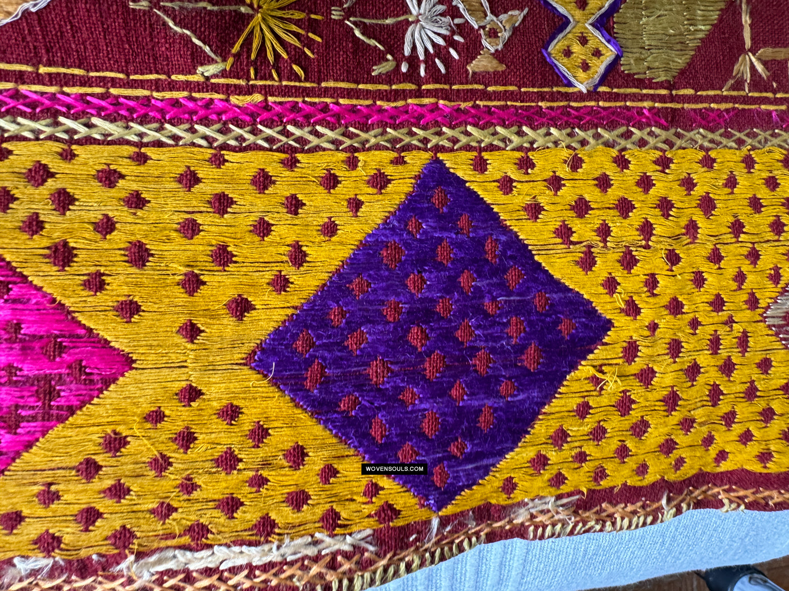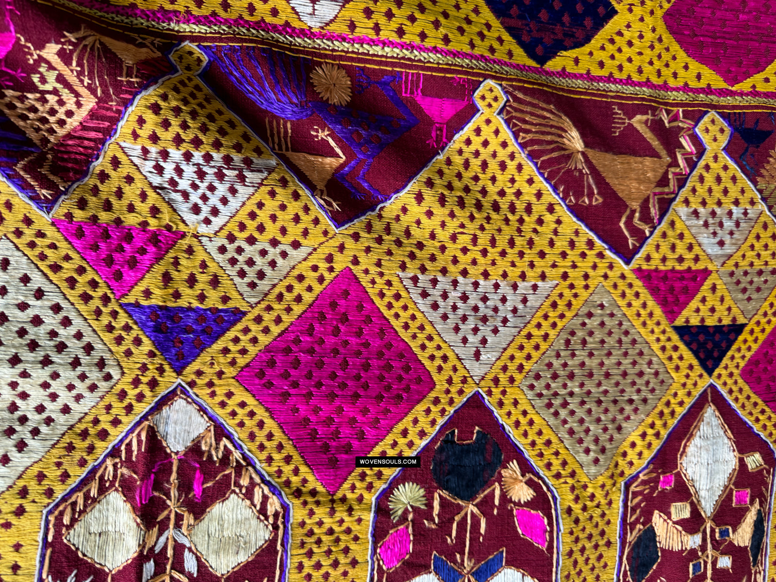 This item has spent a lifetime being used for the purpose of its creation with the original artist/user. Signs of this life lived heartily may be present on the piece in the form of stains, thread loss, loose threads, holes, tears, color run and other imperfections. Therefore the condition must be assumed to be “not” perfect. More photos of such imperfections will be provided on request.